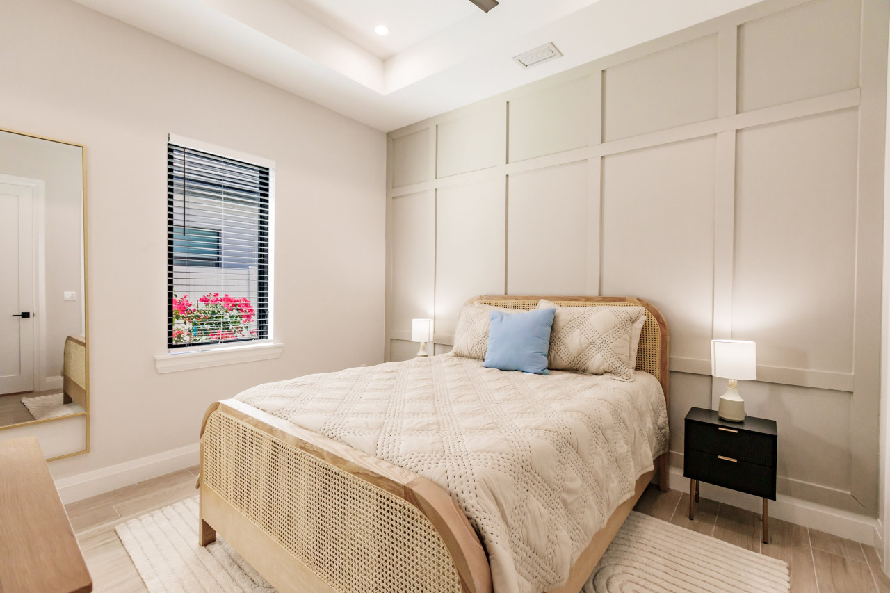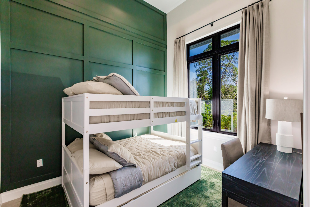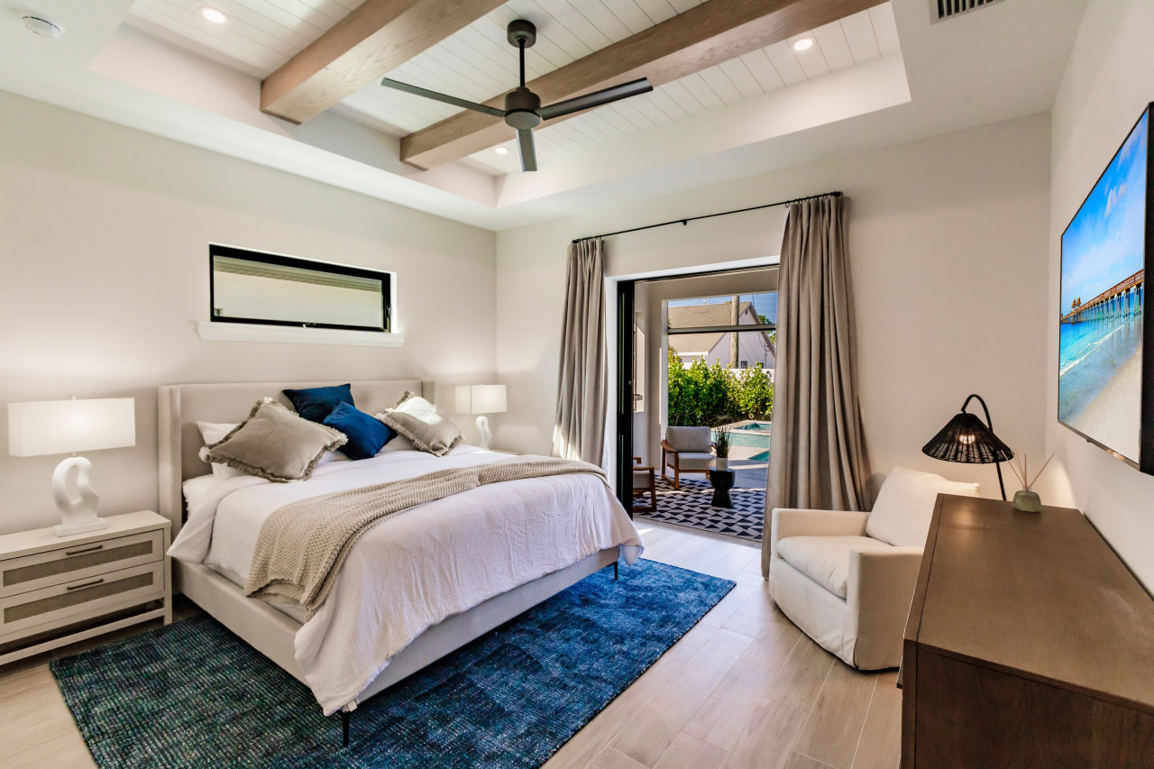 / nightOutdoor Oasis Step into your private backyard retreat featuring a full-length heated pool and spa, surrounded by lush privacy hedges and a fully fenced yard. Indulge in ultimate outdoor living with a full kitchen that includes a gas BBQ, refrigerator, and an elegant 8-person dining setup. Relax in the outdoor living room, complete with a fireplace, motorized screens for a bug-free experience, and TVs to enhance your entertainment. Enjoy music indoors and out with the Sonos sound system. Sophisticated Interiors Every room is thoughtfully designed with luxurious, comfortable furnishings. The oversized master bedroom offers a serene escape, while many other rooms feature cozy seating areas perfect for private relaxation or reading. Gourmet Kitchen & Bar Host effortlessly with a fully equipped kitchen boasting marquee stainless steel appliances, perfect for preparing meals for up to 12 guests. A coffee station awaits with Keurig options, tea, and freshly ground brew capabilities. Small appliances, including a toaster, air fryer, and blender, make meal prep a breeze. The fully stocked bar, complete with a wine cooler, glasses, and cocktail tools, is ready for your next toast. This home offers an unparalleled blend of style, comfort, and convenience, ensuring every moment of your stay is nothing short of extraordinary. Layout (Sleeps 12) 4 bedroom / 3 bathroom Luxury Home Bedroom 1 - (Master) 1 x King Bed with en-suite private bathroom Bedroom 2 - 1 x Queen Bed with en-suite private bathroom Bedroom 3 - 1 x Queen Bed with Jack n Jill private bathroom Bedroom 4 - 1 Bunk (2 x Full) (1 Trundle Twin Bed) ❧ Indoor Living: • Stainless Steel appliances with a fully equipped kitchen with pots, pans, baking sheets, utensils, and more. • Keurig coffee maker with a starter kit featuring k-cups, sugar, and creamer. • Flat-screen Smart TVs with app capabilities in every room. • Complimentary Xfinity high-speed Wi-Fi with Boost for seamless connectivity. • Complimentary toiletries: shampoo, conditioner, soap, and lotion. • Hotel-quality linens, towels, and face cloths for ultimate comfort. • Full-size washer and dryer with a starter pack of laundry detergent. • Starter sets of dishwasher pods and garbage bags provided. • Additional bedding stored in linen closets. • Pack n Play Ready! Additional Infant items available upon request. ☀ Outdoor Amenities: • Heated pool maintained at 86°F in winter. • Lounge chairs for sunbathing on the spacious pool deck. • BBQ grill with utensils (propane maintained by NCV). • Comfortable outdoor seating and a dining area for al fresco meals. • Beach essentials: beach chairs, cooler, and an umbrella. • Ample driveway parking for up to 4 vehicles.