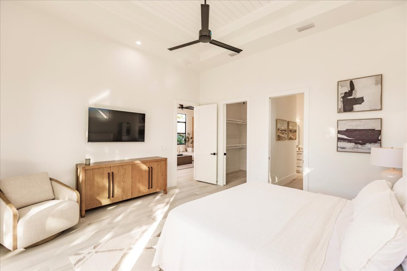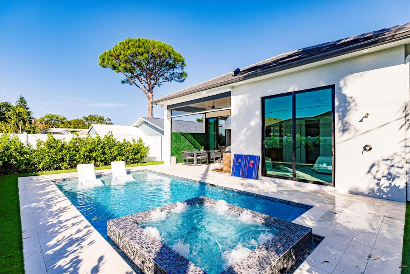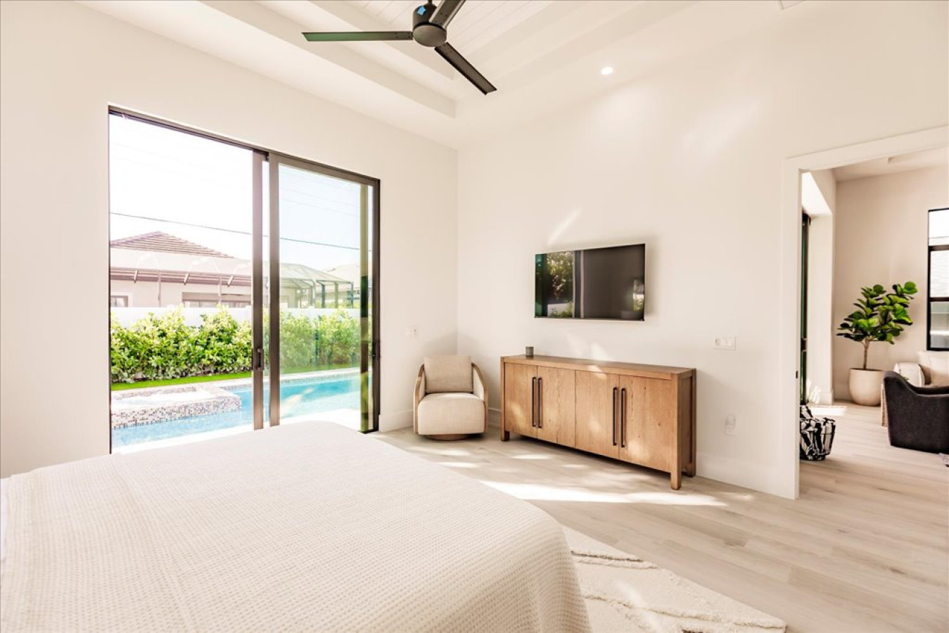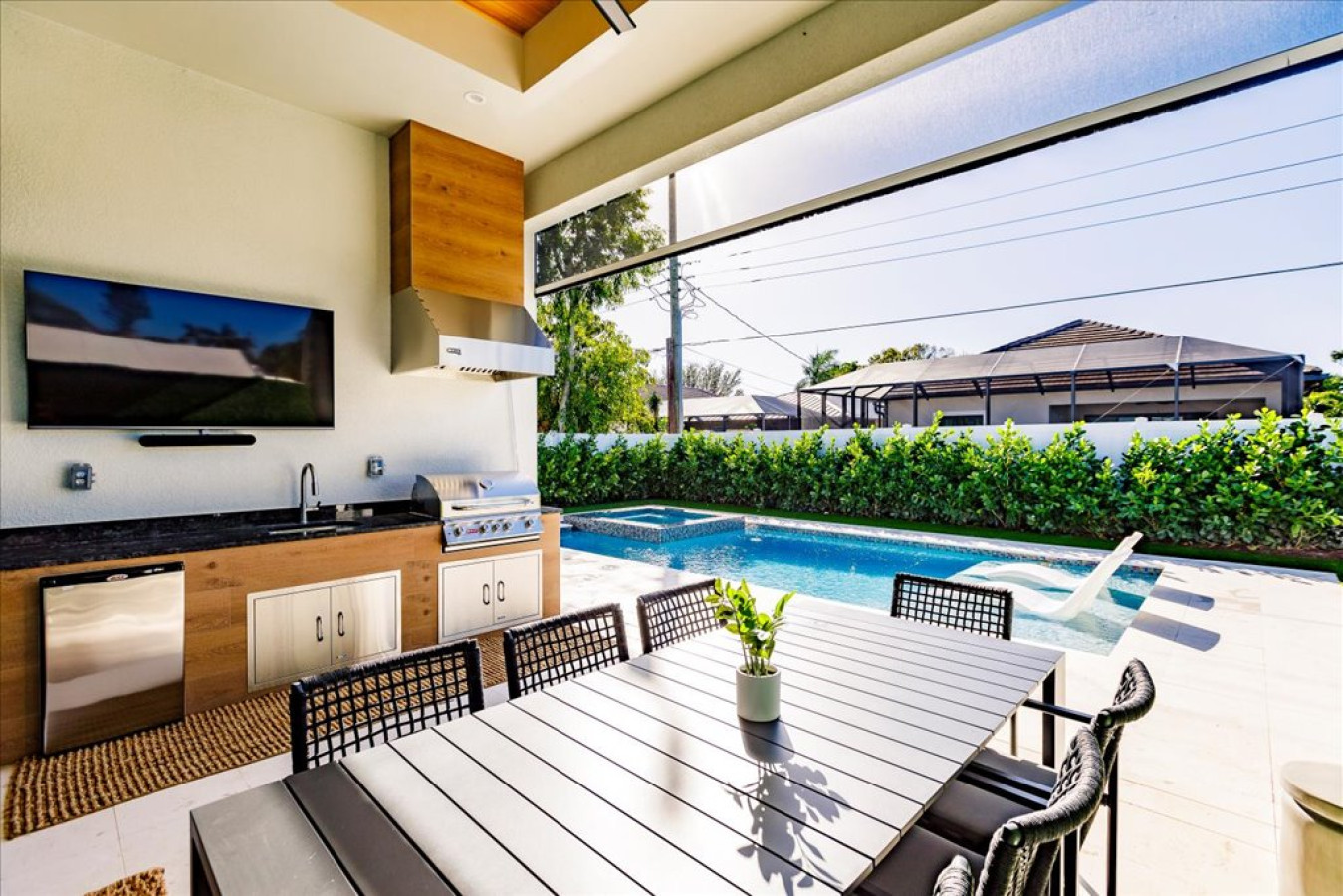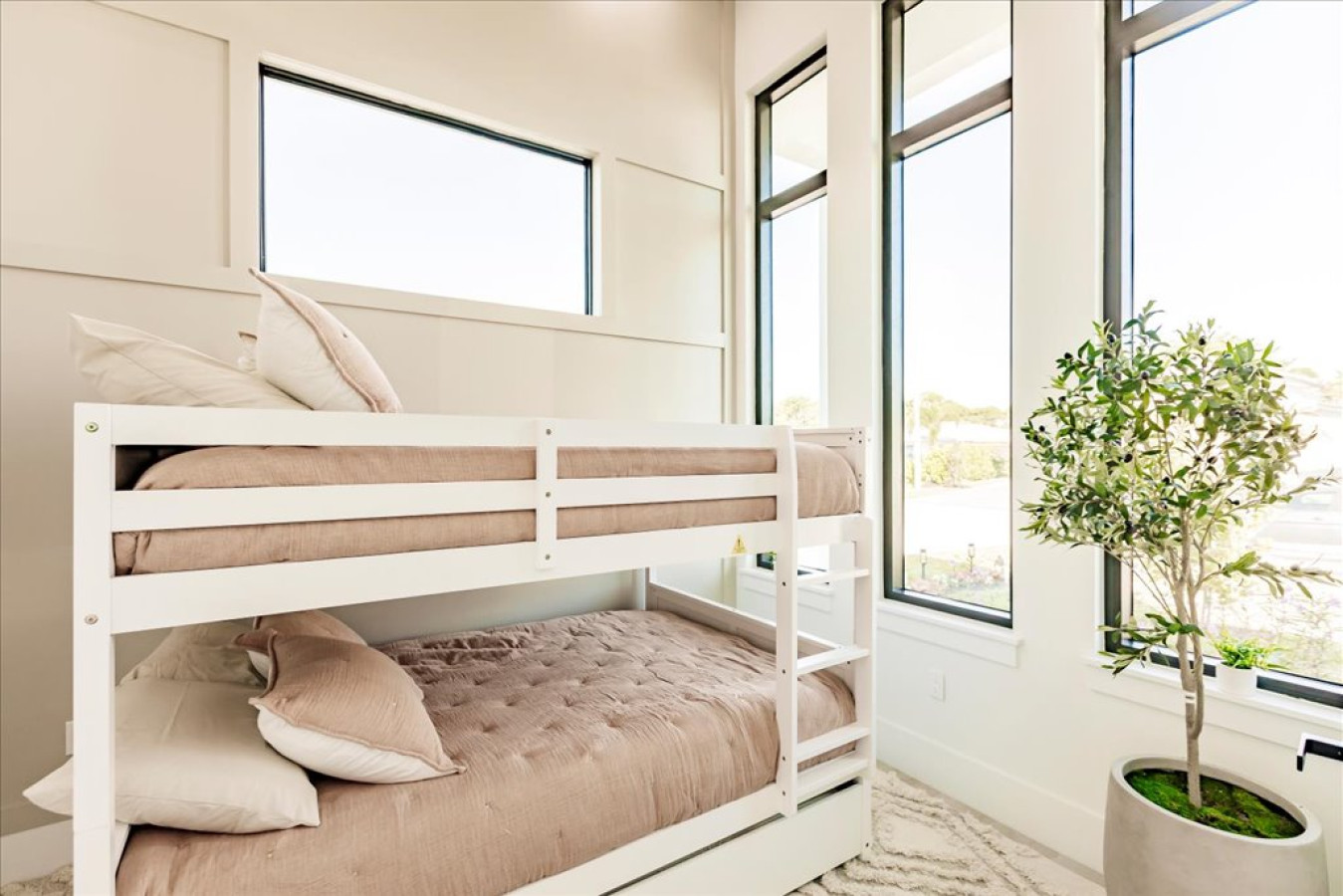 / nightOutdoor Oasis Step into your private backyard retreat featuring a full-length heated pool and spa, surrounded by lush privacy hedges and a fully fenced yard. Indulge in ultimate outdoor living with a full kitchen that includes a gas BBQ, refrigerator, and an elegant 8-person dining setup. Relax in the outdoor living room, complete with a fireplace, motorized screens for a bug-free experience, and TVs to enhance your entertainment. Enjoy music indoors and out with the Sonos sound system. Sophisticated Interiors Every room is thoughtfully designed with luxurious, comfortable furnishings. The oversized master bedroom offers a serene escape, while many other rooms feature cozy seating areas perfect for private relaxation or reading. Gourmet Kitchen & Bar Host effortlessly with a fully equipped kitchen boasting marquee stainless steel appliances, perfect for preparing meals for up to 12 guests. A coffee station awaits with Keurig options, tea, and freshly ground brew capabilities. Small appliances, including a toaster, air fryer, and blender, make meal prep a breeze. The fully stocked bar, complete with a wine cooler, glasses, and cocktail tools, is ready for your next toast. This home offers an unparalleled blend of style, comfort, and convenience, ensuring every moment of your stay is nothing short of extraordinary. Layout (Sleeps 12) 4 bedroom / 3 bathroom Luxury Home Bedroom 1 - (Master) 1 x King Bed with en-suite private bathroom Bedroom 2 - 1 x Queen Bed with en-suite private bathroom Bedroom 3 - 1 x Queen Bed with Jack n Jill private bathroom Bedroom 4 - 1 Bunk (2 x Full) (1 Trundle Twin Bed) ❧ Indoor Living: • Stainless Steel appliances with a fully equipped kitchen with pots, pans, baking sheets, utensils, and more. • Keurig coffee maker with a starter kit featuring k-cups, sugar, and creamer. • Flat-screen Smart TVs with app capabilities in every room. • Complimentary Xfinity high-speed Wi-Fi with Boost for seamless connectivity. • Complimentary toiletries: shampoo, conditioner, soap, and lotion. • Hotel-quality linens, towels, and face cloths for ultimate comfort. • Full-size washer and dryer with a starter pack of laundry detergent. • Starter sets of dishwasher pods and garbage bags provided. • Additional bedding stored in linen closets. • Pack n Play Ready! Additional Infant items available upon request. ☀ Outdoor Amenities: • Heated pool maintained at 86°F in winter. • Lounge chairs for sunbathing on the spacious pool deck. • BBQ grill with utensils (propane maintained by NCV). • Comfortable outdoor seating and a dining area for al fresco meals. • Beach essentials: beach chairs, cooler, and an umbrella. • Ample driveway parking for up to 4 vehicles.